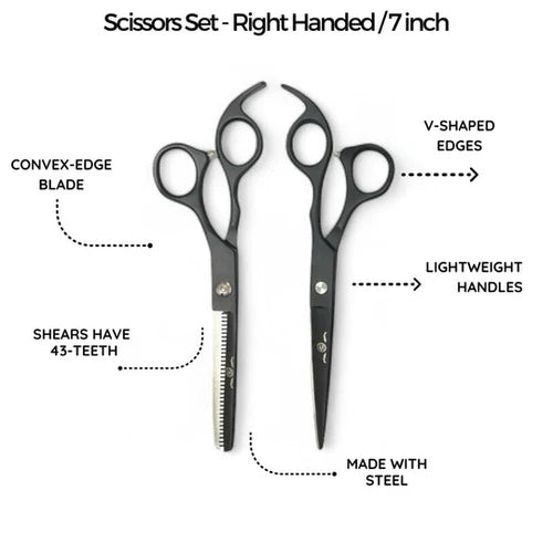 Rolda 7" Right Handed Hair Cutting Scissors & Thinning Shear Set - Black